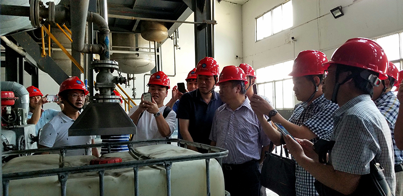 考察团实地考察了太阳集团官网车间生产,废气收集处理和污水处理系统及处理效果。特别对我司通过有机溶剂吸收和自动碱液喷淋处理废气印象深刻。
