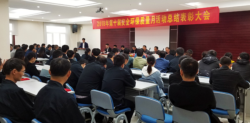 10月15日下午,公司召开第十届安全环保质量活动月总结表彰大会。市安监局、环保局、市监局、经开区管委会及市总工会领导莅临会议,公司总经理徐基平、副总经理储艳新、王天义、汪民富及获奖代表和生产一线员工共约120余人参加了会议。会议对2018年安全环保质量活动月各项活动进行总结,提出了改进目标,并对活动月期间涌现出的先进集体和先进个人进行表彰奖励。