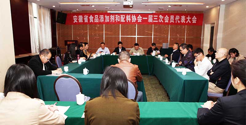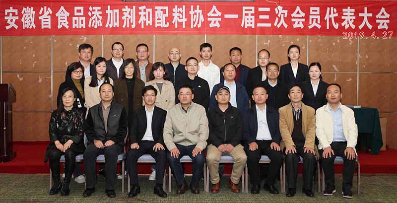 安徽省食品添加剂和配料协会一届三次会议暨2018年度会员大会于2019年4月26日在潜山市舒州国际大酒店隆重召开,来自全省食品添加剂企业的代表和安徽科技学院食品学院、滁州学院食品学院的专家共30余人出席会议。