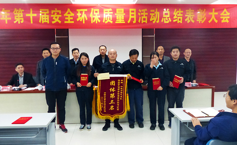 10月15日下午,公司召开第十届安全环保质量活动月总结表彰大会。市安监局、环保局、市监局、经开区管委会及市总工会领导莅临会议,公司总经理徐基平、副总经理储艳新、王天义、汪民富及获奖代表和生产一线员工共约120余人参加了会议。会议对2018年安全环保质量活动月各项活动进行总结,提出了改进目标,并对活动月期间涌现出的先进集体和先进个人进行表彰奖励。