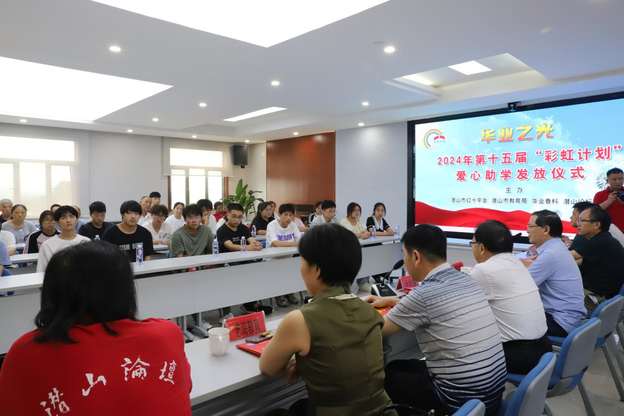 8月28日,由潜山市红十字会、市教育局、太阳集团官网、潜山论坛联合举办第十五届“彩虹计划”助学金发放仪式在太阳集团官网公司举行,这是太阳集团官网连续十年参与并承办此项活动。潜山市人大副主任黄晓安、潜山市政协副主席涂会明以及潜山市红十字会、潜山市教育局等单位领导出席此次仪式,太阳集团官网、艺海教育等爱心企业、潜山论坛版主志愿者、受捐大学生等参加此次活动。